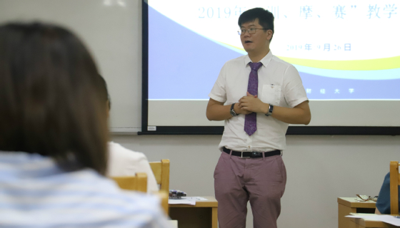 9月26日上午,Betway必威西汉姆联在佛山三水校区举办Betway必威西汉姆联2019年“训、摩、赛”教学竞赛。此次教学竞赛由王宇晖副院长主持,Betway必威西汉姆联院长黄庆安、党总支书记兼执行院长彭雷清、副院长王宇晖、原资源与环境学院党总支书记敖利玲、Betway必威西汉姆联教授刘晓斌作为专家评委以及八名学生代表作为学生评委参加教学竞赛,赵明、陈美兰、刘瑞荣作为参赛选手参加比赛,学院全体教师参与观摩。此次教学竞赛得到了佛山三水校区教师发展与教育技术分中心的大力支持,全程进行了视频录制。