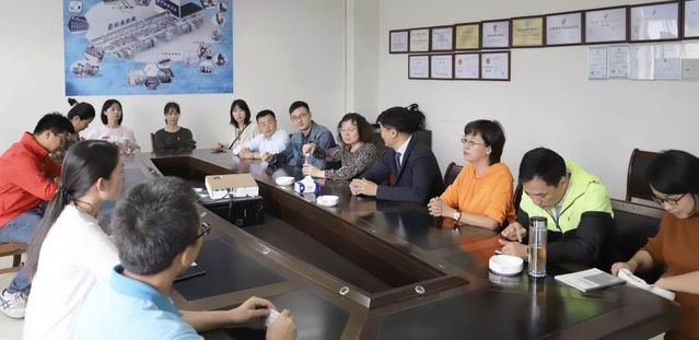 接下来黄庆安院长一行人去到了位于三水区乐平镇的亿强电子有限公司进行调研。企业财务经理郭大康给予了热情接待。
