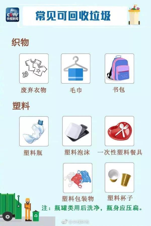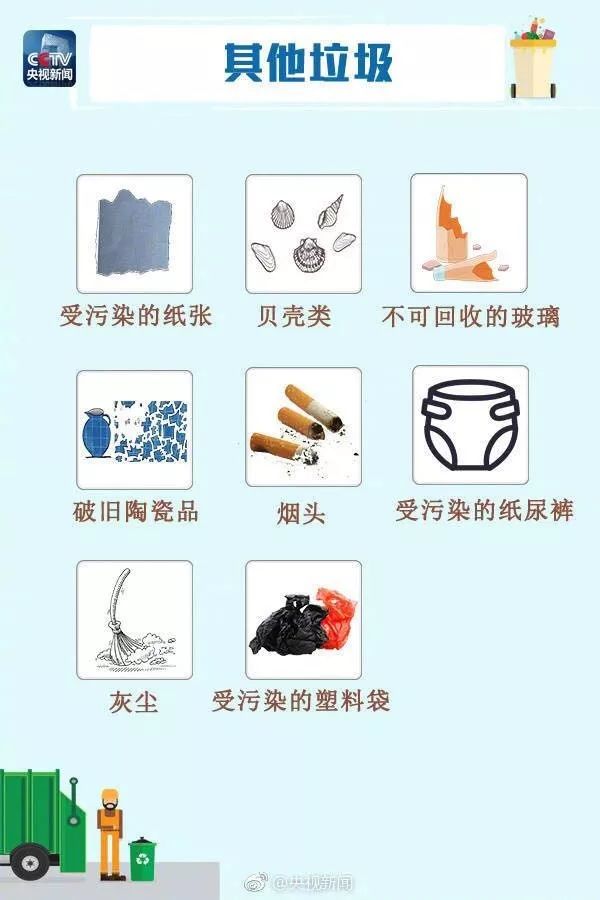 小环卫:那么接下来我们就通过央视发布的图片来了解一下垃圾的正确分类吧。