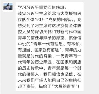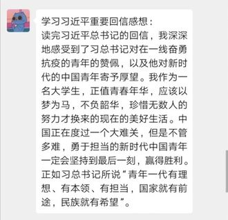 寄语:五四精神本质是爱国主义精神,鼓励着广大青年们奋发有为、爱国报国。习近平总书记高度关心青年大学生,希望我们能牢记总书记的期望之语,努力学习,爱国爱党。