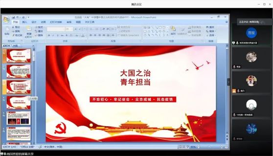 最后,彭雷清书记从党建活动、网络教学、学生管理等方面向同学们介绍Betway必威西汉姆联抗疫工作的基本情况。彭雷清书记请参与了疫情期间各项活动的同学们向大家分享心得,并与各个专业的同学交流了疫情期间在家学习生活的情况,提醒同学们保持好的心态认真学习、积极备考。彭雷清书记还向同学们分享了个人经历,鼓励同学们加入学生干部并获得相关的工作经验,并提醒同学们要发挥自己作为学生干部或入党积极分子的先锋模范作用,不负时代使命、不负党的期望、不负人民的期待和民族的重托,用努力奋斗的青春,把自己成就为一个有理想、有本领、有担当的时代新人。