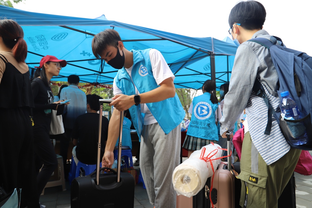 一直在线上给大家答疑解惑的班助们也在今日与大家正式见面啦!除了指引大家到校报到之外,班助们今天还承担了接待大家的任务,将爱心传递给自己的师弟师妹。