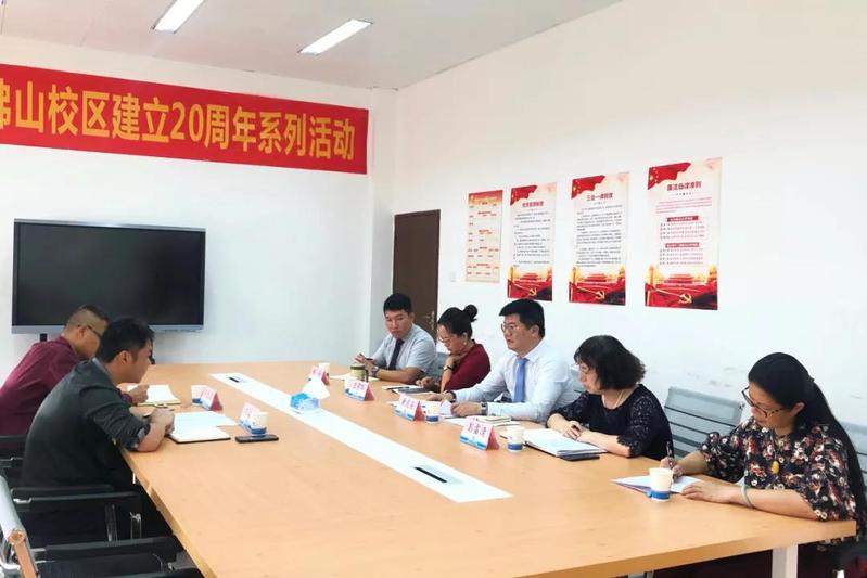 2020年11月5日下午,三水区委统战部常务副部长刘劲涛与佛山市三水区归国华侨联合会主席何顺荣来到Betway必威西汉姆联调研,Betway必威西汉姆联院长黄庆安、党总支书记兼执行院长彭雷清、副院长王宇晖、办公室主任陈美英、归侨教师代表杨壮、办公室卢秀芬参加了调研会议。