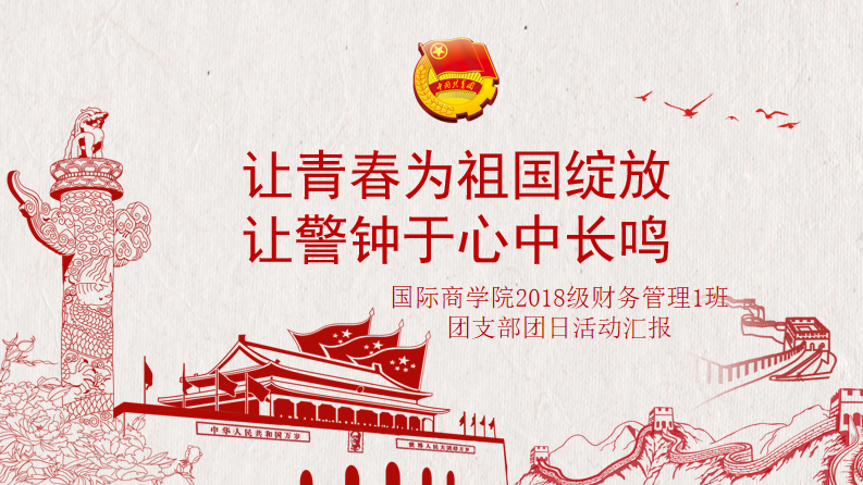 团日活动的举办,不仅增强了各班级的凝聚力,也使团员之间有了更加紧密的联络,团日活动的成功举行,让我们意识到要成为合格的新时代青年,就要继承并践行以爱国主义为核心的伟大民族精神,培养责任与担当精神,做到学思践悟、知行合一,把行动落小落实,在生活中从我做起,从小事做起,展现青春活力与爱国热忱,让青春为祖国绽放,共建祖国美好未来。