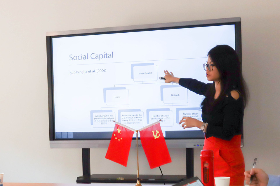 接着,林晓君老师开始了《社会资本对税务调整的影响速度》这一课题的论述。林老师首先解释了社会资本的定义,并指出社会资本与社会道德和人际关系紧密度有关。林老师还提到,各个地区的社会意识不同使得同一种行为会有不同的对待方式,因此,文化类因素对企业纳税的影响不容忽视。