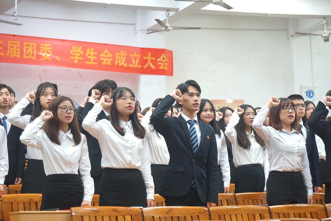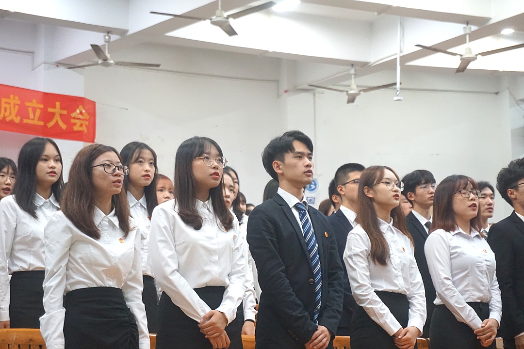 在全员铿锵有力的歌声下,气贯长虹的团歌中,Betway必威西汉姆联第三届团委、学生会成立大会正式开始。