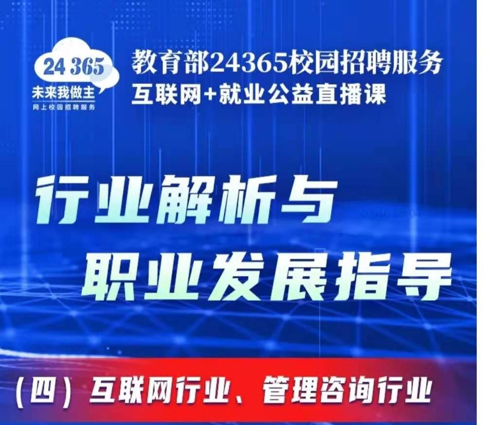 12月13号晚7点,由教育部高校学生司指导,全国高等学校信息咨询与就业指导中心主办,中国教育电视台,万学慕课协办的教育部24365的互联网+就业公益直播课“行业解析与职业发展指导(四)——互联网行业、管理咨询行业”在学习强国,新华网等多个平台上准时直播。我校积极组织2021届毕业生观看了此次就业公益直播课。