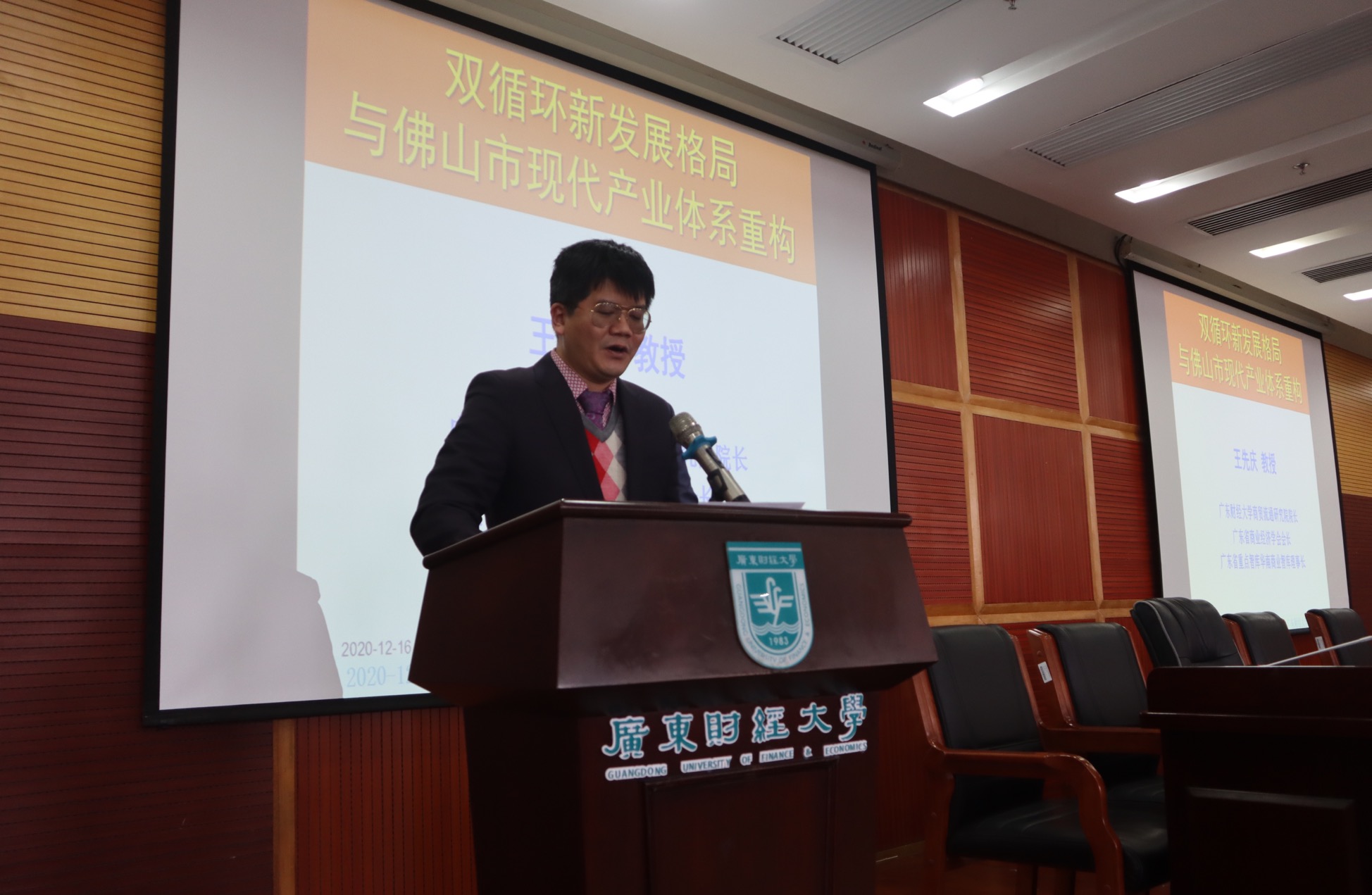 为庆祝佛山校区建校20周年,12月16日下午,佛山校区管委会和Betway必威西汉姆联邀请广东财经大学商贸流通经济研究院院长、广东省商业经济学会会长王先庆教授为佛山校区师生作了题为“双循环新发展格局与佛山现代产业体系重构”的学术讲座。此次讲座由Betway必威西汉姆联院长黄庆安主持,佛山校区党委常务副书记冯东海、Betway必威西汉姆联党总支书记兼执行院长彭雷清、佛山现代服务业研究院院长林仲豪及全体中层干部;文化创意与旅游学院(湾区影视产业学院)、现代服务业研究院、佛山校区研究生院、Betway必威西汉姆联近200名师生参加讲座。