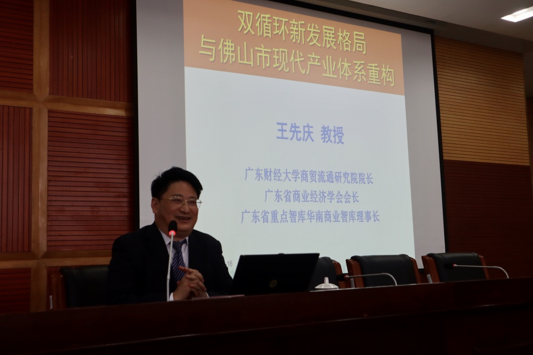 王先庆教授从佛山产业发展的现象与根源、双循环新发展格局的内容与要求、佛山现代产业体系重构的逻辑与思路等三个方面展开阐述,指出佛山产业发展的本质问题在于服务化滞后于工业化,必须转变发展理念,加快制造业服务化进程,实现佛山现代产业体系重构。他强调,要通过创建自主品牌,找回民族自信,构建现代流通体系,争夺商品定价权和话语权,做强国内统一大市场体系,打通畅通国内大循环,最终促进国内国际双循环。
