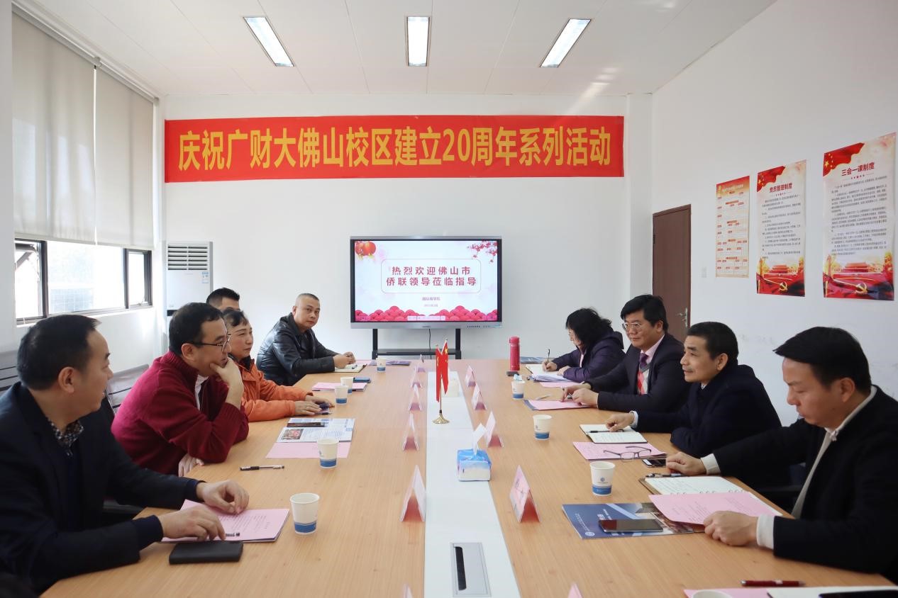 1月14日上午,佛山市侨联主席蔡国雄、副主席费红玉,广东山湖集团有限公司总裁霍劲锋一行6人赴佛山校区Betway必威西汉姆联考察调研,佛山校区党委副书记钟智、组织部(统战部)副部长杨长春、Betway必威西汉姆联院长黄庆安、党总支书记兼执行院长彭雷清、副院长王宇晖及各教研室主任等参加会议。