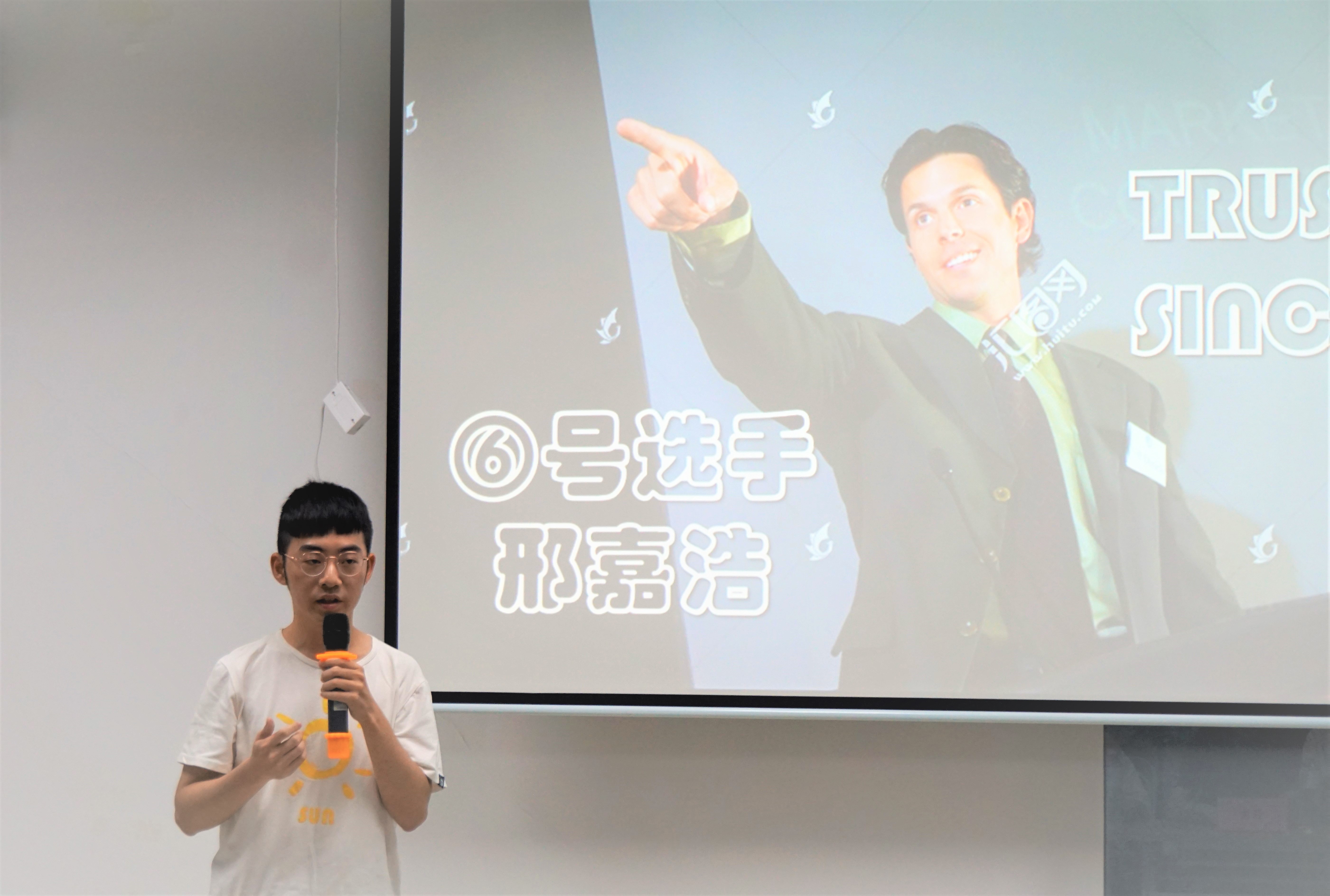 刘景泓同学选取丘吉尔的二战经典演讲《我们决不投降》,声色并会,激情昂扬,将永不言弃、向敌人战斗到底的期望传达给了现场的每一位同学,听得大家热血沸腾。