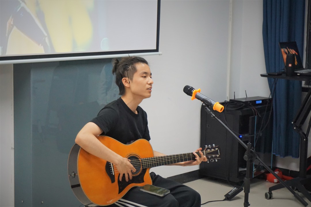 在我们等待比赛结果的同时,为了缓解现场的紧张气氛,音乐队的林哲学长为我们演唱了一首陈奕迅的《我们》。歌声沁人心扉,大家都渐渐地放松了下来...