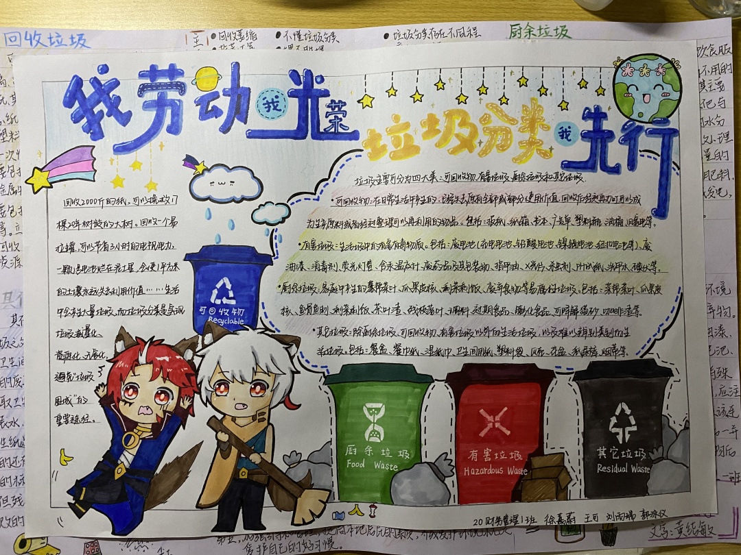 为建设美丽中国,构建资源节约型、环境友好型社会,校党委副书记刘祖华在学习贯彻广东财经大学第一次党代会精神的专题会议上指出:要贯彻落实习近平总书记提出的新发展理念,大力弘扬劳模精神、劳动精神,强调大学以育人为本。为贯彻会议精神,Betway必威西汉姆联于11月10日举办社区文化节活动之“我劳动我光荣 垃圾分类我先行”手抄报绘画大赛。