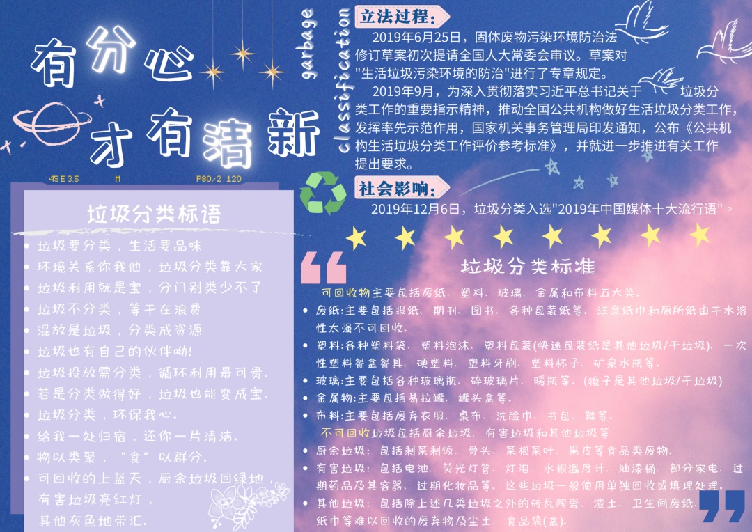 看完了以上这么多精美的手抄报,相信大家在欣赏的同时也学到的许多关于垃圾分类的小知识。垃圾分类,人人有责,让我们从现在开始、从身边开始积极地投身于垃圾分类,让我们的广财校园变得更加美丽吧!