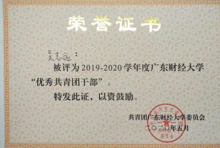 我曾任学院学生会副主席,现任本班团支书。作为党员和学生干部,我的初心是服务同学,使命是为开展学生工作贡献力量。我以正确的政治意识和高度的工作责任感,履职尽责,尽心尽力,发挥好老师和学生间的联系纽带作用,为推进学生会和团支部顺利开展工作作出积极贡献,因此荣获了校优秀团干、五四红旗团支部荣誉。