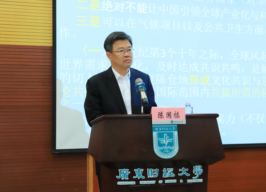 3月19日下午,科研处和Betway必威西汉姆联共同主办的2020-2021学年第7期“善水大讲坛” 之“环球视野”系列讲座在佛山校区学术报告厅举行。中国高科技产业化研究会副理事长刘延宁研究员作题为《提升国家综合文化软实力,以强化经济全球化中不战而胜实力的战略思路》的讲座,中国高科技产业化研究会副秘书长兼国际交流中心康哲秀主任、佛山校区管委会王伟主任、科研处王喜亚副处长、共建办陈红丽副主任以及Betway必威西汉姆联黄庆安院长、王宇晖副院长等参加讲座,全校300余名师生参加。陈国栋副校长主持讲座。