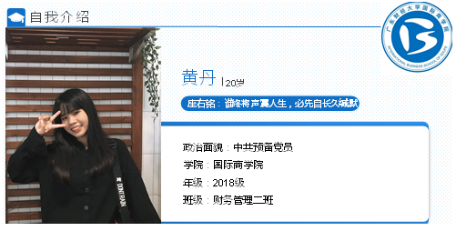 大家好,我是黄丹,非常荣幸能够有这次机会与大家分享我的一点小小经历与感想。首先我认为在大学里最重要的是找准自己的定位,其次在确定自己的目标之后能够朝目标努力前进。我的大学生活很简单,可以概况为三个部分分别为:学习篇、工作篇、实践篇。
