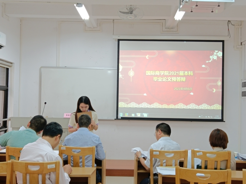 本次预答辩分为5个组进行,分学生展示和答辩教师点评两个环节。预答辩开始前,答辩组长首先强调了毕业论文的重要性、答辩程序以及答辩场纪律。过程中,学生就毕业论文的选题、研究现状、主要内容以及创新之处等方面进行汇报。答辩教师则从论文选题、格式规范、论文框架、论文创新性等多个方面有针对性地提出了修改意见和建议。预答辩结束后,各答辩组将答辩意见反馈给论文指导老师,供论文指导老师参考。本次预答辩还设立了线上答辩分会场。此次预答辩顺利进行,为下一步的论文修改工作及论文正式答辩,奠定了坚实的基础。