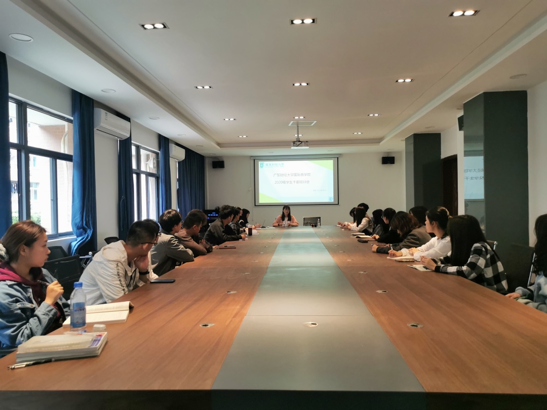 最后,吕阳老师提出了对班干部的期望,希望各位班干部要正确定位“学生干部”这一位置,为同学们服务。在收获经验的同时,提出创新性的建议,提高综合素质,积极参与学院的建设。