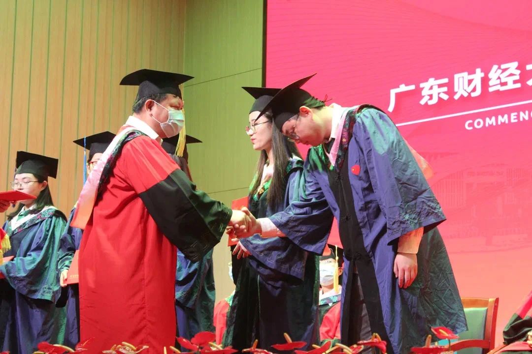佛山市副市长代表佛山市人民政府向毕业的全学段同学们表示热烈祝贺,向辛勤耕耘的各位老师表达诚挚谢意,并向毕业生们提出了三点期望:一是要向善,保持心灵永远的善良;二是要保持纯粹的心,学会做一个单纯的人;三是要超越,超越自己,推动社会的进步。他衷心祝愿同学们工作顺利、学业进步、大展宏图,老师们身体健康、家庭幸福,广东财经大学的明天更加辉煌。