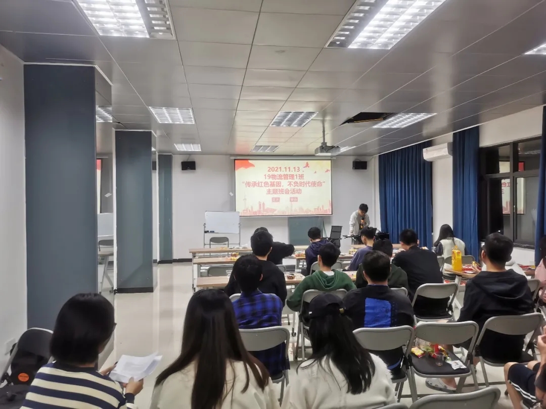 2021年 11月19日,2020级财务管理(中外联合培养项目)一班举行了以“传承红色基因,不负时代使命”为主题的班会。主讲人团支书许淇茵为同学们讲解了中国共产党成立100年来从小到大、从弱到强、攻坚克难、一路成长的奋斗历史,呼吁同学们勿忘拼搏历史,牢记社会主义使命,同时引用革命先辈事例,劝诫同学发奋学习,争取为祖国建设添一份力量。