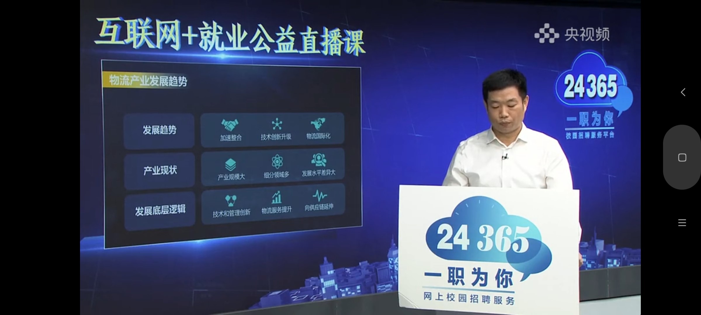 12月19日,我观看了教育部24365就业公益直播课,本次直播课主题为:物流快递行业发展趋势和职业机会。