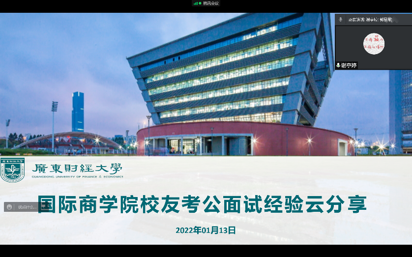 为坚持学史力行,扎实推进“我为群众办实事”实践活动,全力做好就业工作精准帮扶,帮助学院2022届毕业生中通过国家公务员考试笔试的同学做好进一步的面试准备,1月13日晚上,Betway必威西汉姆联在线上平台开展校友公务员面试经验云分享。会议由辅导员李林主持,学院党委副书记郭显军以及学院进入国考面试的15名同学参加了分享会。
