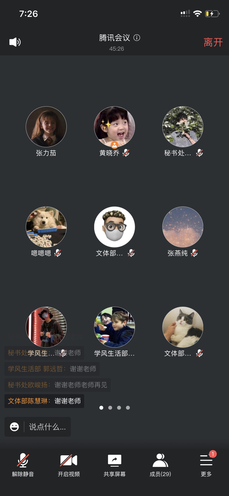 黄晓乔老师在腾讯会议上指出,作为学生会成员应该明确自己的定位,牢记为同学服务的宗旨,引导广大同学自觉的把个人理想融入到党和人民的共同奋斗之中去。要坚持从同学中来,到同学中去,及时听取收集同学在学业发展、权益维护等方面的一些普遍需求和现实困难,并及时反馈给学校,帮助有效的解决,起到一个双向沟通、及时反馈的作用。
