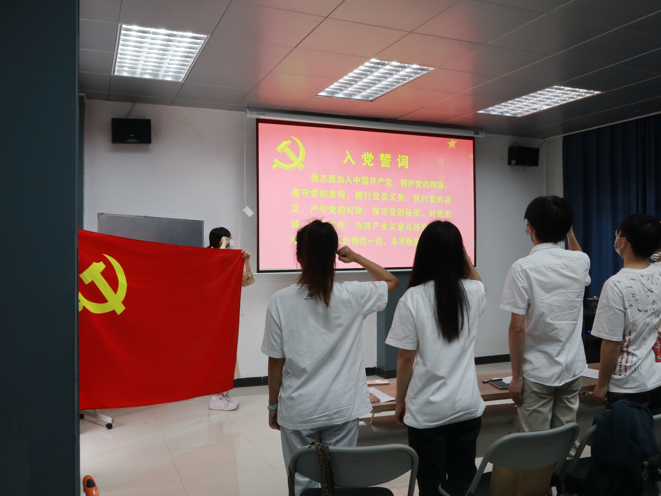 讨论预备党员转正支部大会按照组织发展程序进行。会上,预备党员吴炫佳等十五名预备党员分别汇报了预备期一年来的具体情况,党小组、支委报告了党员和群众等意见情况并发表意见。与会同志经过充分讨论,分别对十五名预备党员同志的思想政治以及学习生活表现发表了意见。通过无记名投票方式进行表决,一致同意吴炫佳、伍嘉文、黄贵英、黄杰、何靖怡、吴钰龙、蔡仰淇、王璐、许家鑫、陈淑欣、麦志安、林翠媚、冯凡荣、官天慧、陈远麟同志按期转为中共正式党员。在陈迪同志的带领下,十五名新党员郑重举起右拳,庄严宣读入党誓词。