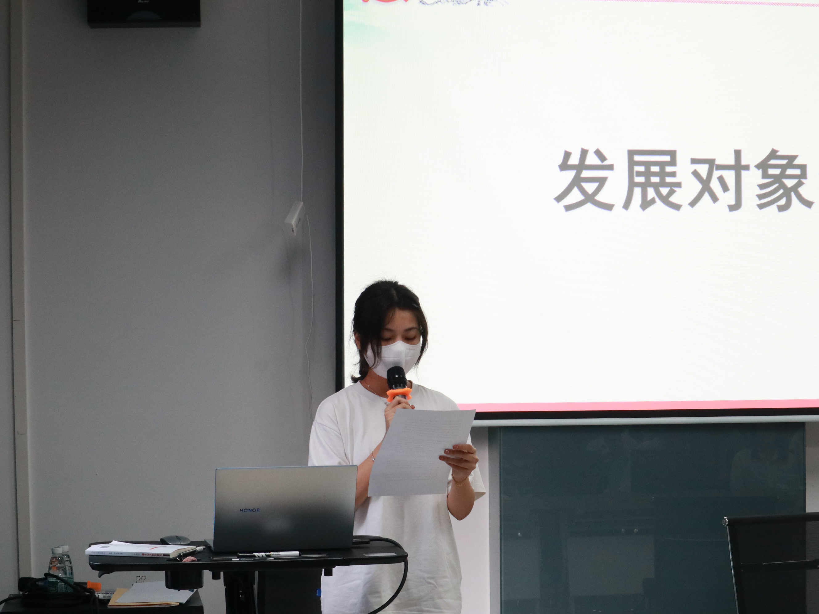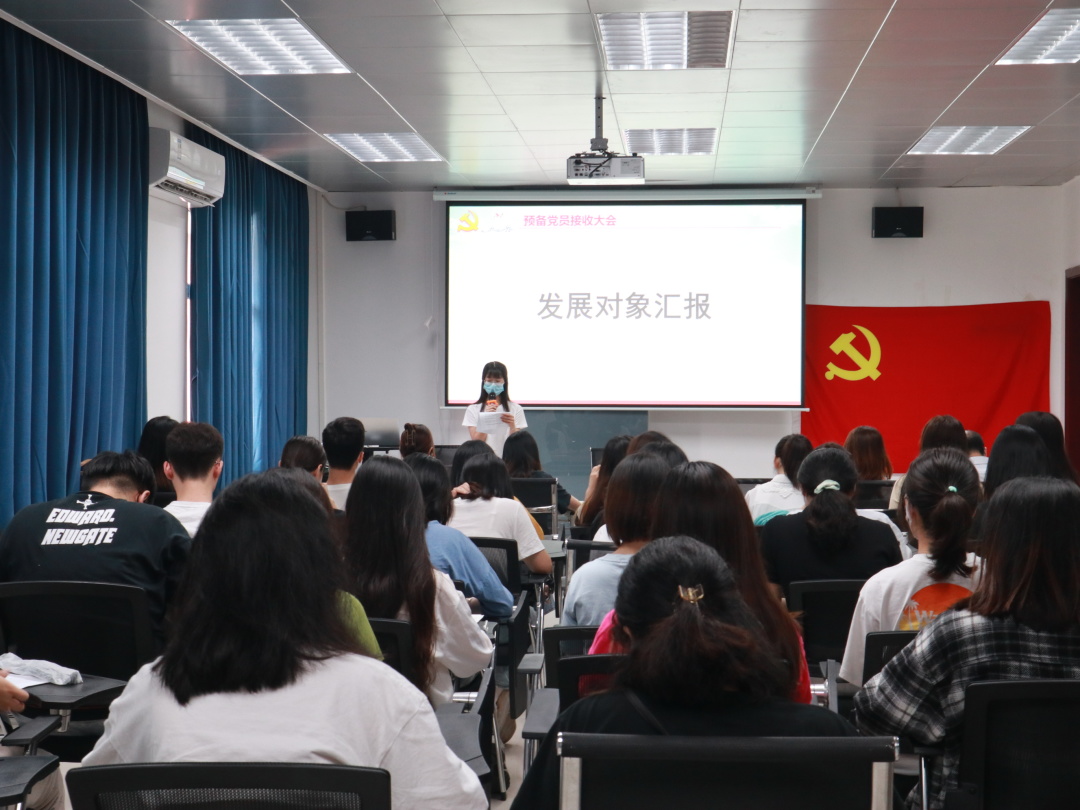 讨论接收预备党员支部大会严格按照流程进行。李寒薇、许淇茵等八名发展对象逐一汇报本人的入党动机、思想认知、学习生活等情况,并表达了入党的期望和决心。随后,入党介绍人马丹莉、李情怡分别对八位发展对象主要情况作总结发言。组织委员马丹莉向支部大会分别汇报了八位发展对象政审情况。经与会党员无记名投票表决,确定接收李寒薇、许淇茵、陈美冰、赖红钥、欧阳少嘉、张绮琳、赵紫晴、李欢同志为中共预备党员。
