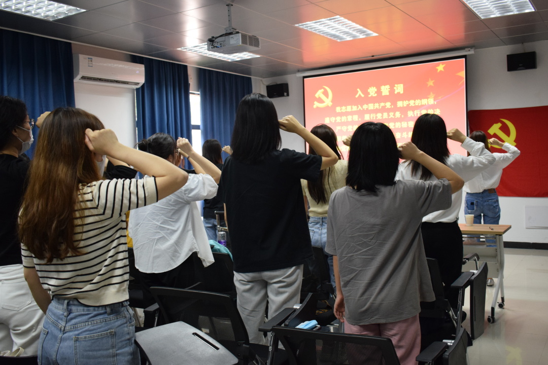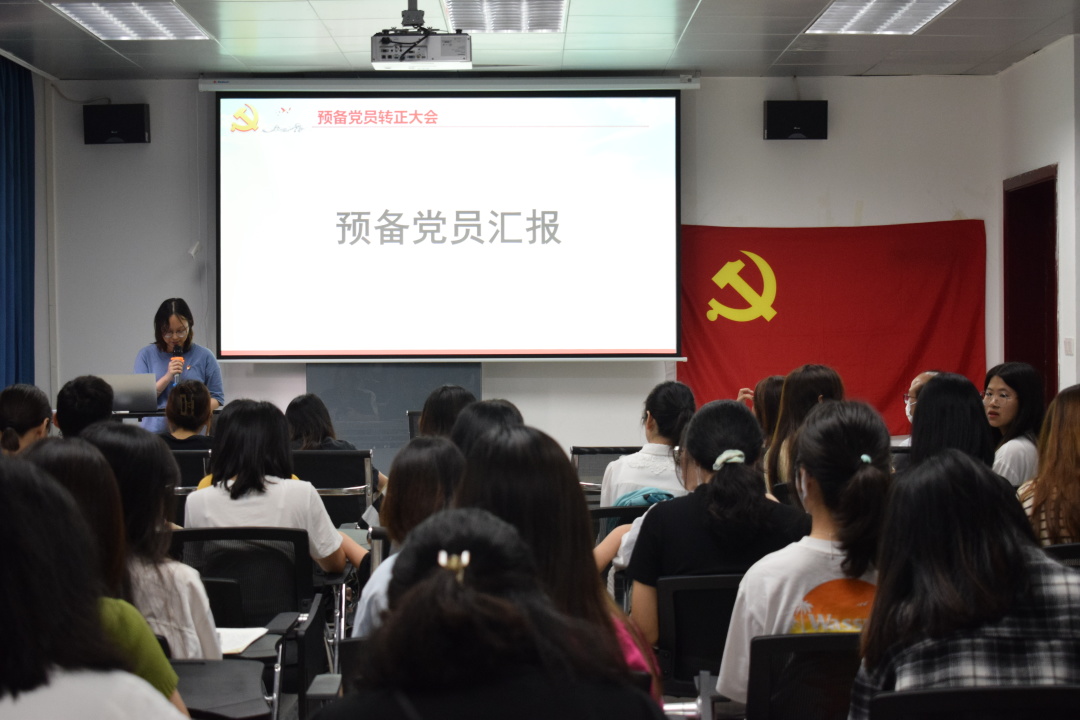 讨论预备党员转正支部大会按照组织发展程序进行。会上,预备党员钟颖昕、张玲玲等十二名预备党员分别汇报本人思想、学习、生活等方面的情况,并表明自己加入中国共产党的决心。党小组、支部委员向大会报告了群众意见及预备期表现情况。与会党员结合十二名同志思想政治、学习生活表现及能否转正问题进行了充分讨论并无记名投票表决。经表决,大会作出同意钟颖昕、张玲玲、陈晓斌、杨琳、詹维浠、林美梅、白乐欢、黄淑贞、廖丽漫、李颖妍、许斌杰、刘培韩同志按期转为中共正式党员的决议。在黄晓乔同志的带领下,十二名新党员郑重举起右拳,庄严宣读入党誓词。