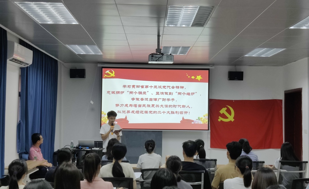 学院学生党支部书记黄达非做总结讲话,要求学生党支部所有党员和积极分子要认真学习、深刻领会省第十三次党代会精神,牢记苏部长对大家的教导,以更加饱满的热情、投入到学习生活当中。