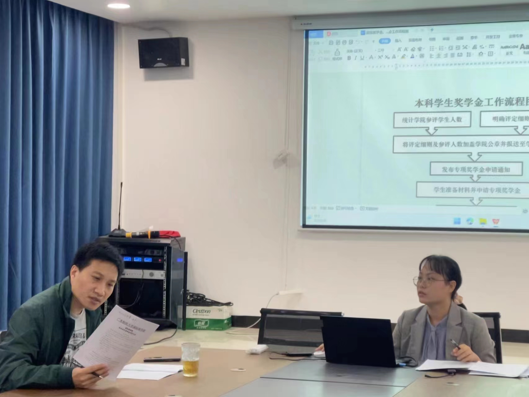 会议伊始,郭显军副书记带领辅导员们认真学习了习近平总书记在中国共产党第二十次全国代表大会上所作的报告,郭显军表示,党的二十大报告思想深邃,高屋建瓴,振奋人心。在新征程上,各位辅导员要牢记为党育人、为国育才使命。在工作中做好学生的表率,用实际行动践行“请党放心,强国有我”的誓言。随后,辅导员罗娴明将近期开展的各项资助工作形成工作流程图并逐一进行梳理与总结,重点围绕2021-2022学年度奖助学金工作情况进行交流和讨论。她带领大家共同学习《广东财经大学本科生国家奖学金、国家励志奖学金、国家助学金评定实施细则》、《Betway必威西汉姆联本科生国家奖学金、国家励志奖学金、国家助学金评定实施细则》、《广东财经大学本科学生奖学金评选办法》和《Betway必威西汉姆联本科学生奖学金评定办法》文件精神,并对奖助学金评审工作细则及工作要求进行了具体说明。罗娴明带领大家就本次奖助学金评审工作进行复盘,对工作中存在的问题与不足进行讨论,大家集思广益,对文件中的不足之处给予针对性的修订意见与建议。