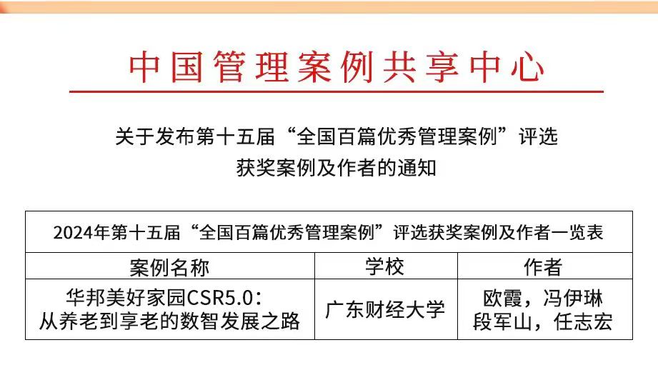 2024年9月9日,在全国工商管理专业学位研究生教育指导委员会的指导下,中国管理案例共享中心正式发布“第十五届全国百篇优秀管理案例”获奖名单。
