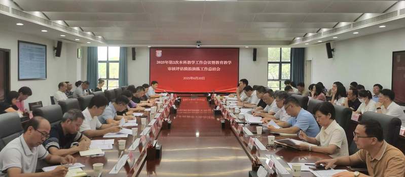 教务处处长陈建林作本科教育教学审核评估模拟演练工作总结,并进行了下一步工作安排:规范师生调查问卷填报工作,确保数据真实有效;严格把控时间节点,6月30日前完成自评报告及示范案例定稿并提交校长办公会审定,7月3日前完成审核评估系统前期资料上传;启动9月全方位模拟演练筹备工作,为正式评估的开展奠定基础。各专项工作组负责人陈建林、黄沃才、苏明华、张鹏程、刘大鹏、江晓铃汇报了本专项小组的工作推进情况及下一步工作安排。